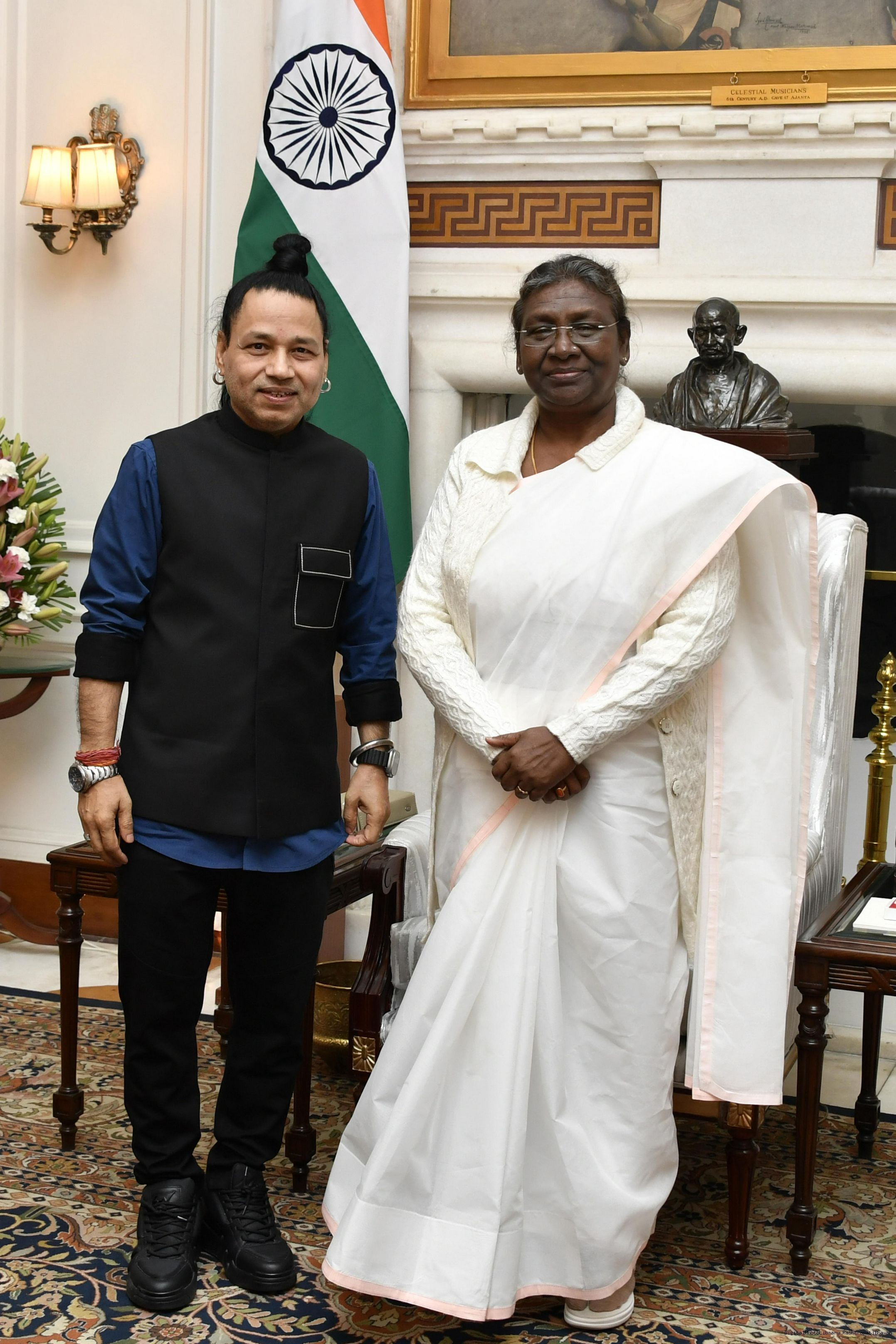 Shri Kailash Kher meeting with the President of India, Smt. Droupadi Murmu, at Rashtrapati Bhavan on Dec 01, 2022.