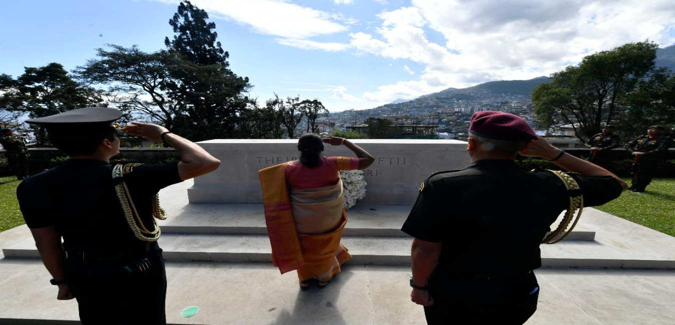 The President of India, Smt. Droupadi Murmu visited Kohima War Cemetery and laid wreath to the fallen heroes, in Kohima on November 03, 2022. The President paid homage to the bravehearts who made supreme sacrifice in the line of duty in and around Kohima during World War II.