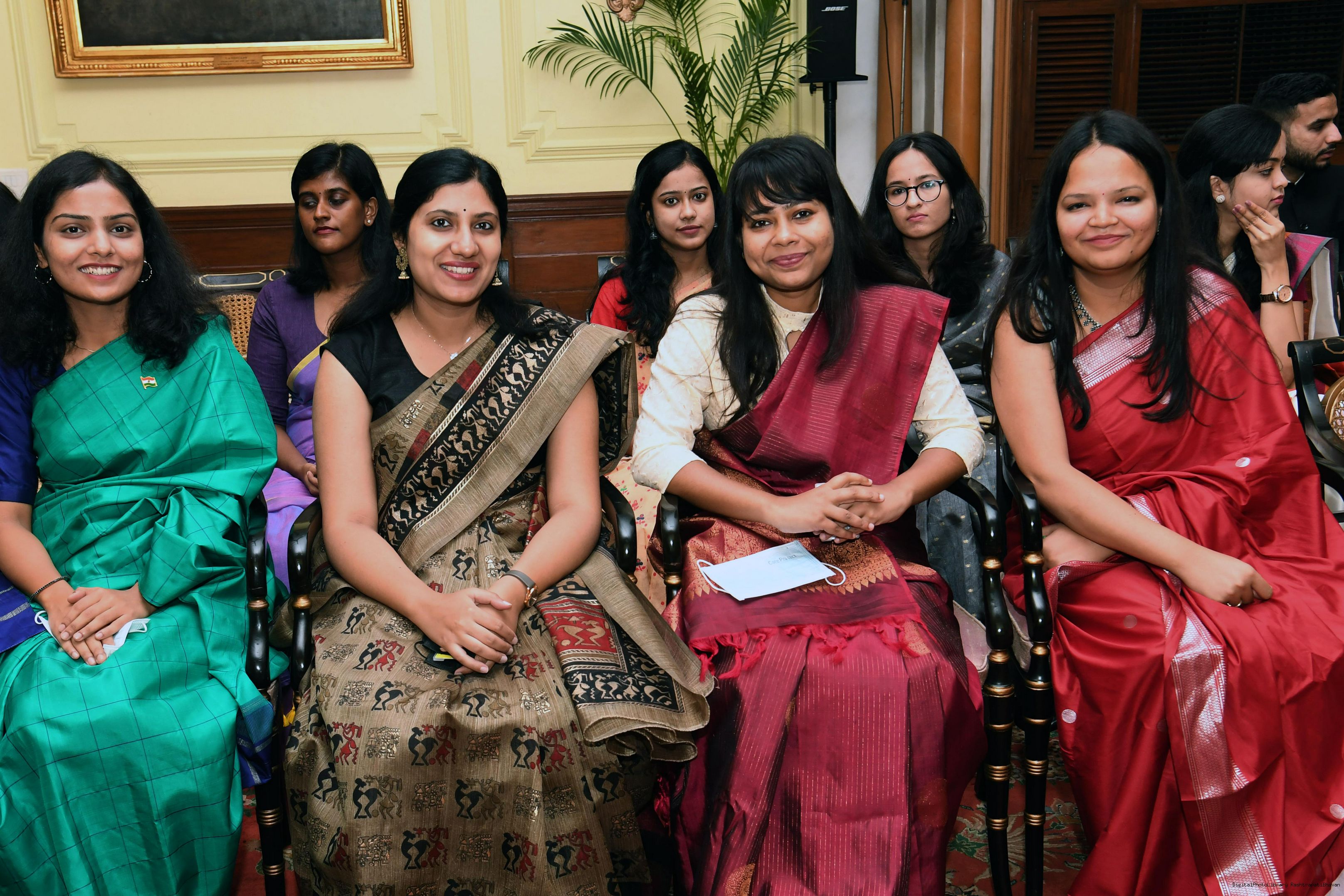 The President of India, Smt. Droupadi Murmu meets officer trainees of 2021 batch of the Indian Foreign Service, at Rashtrapati Bhavan on September 29, 2022.