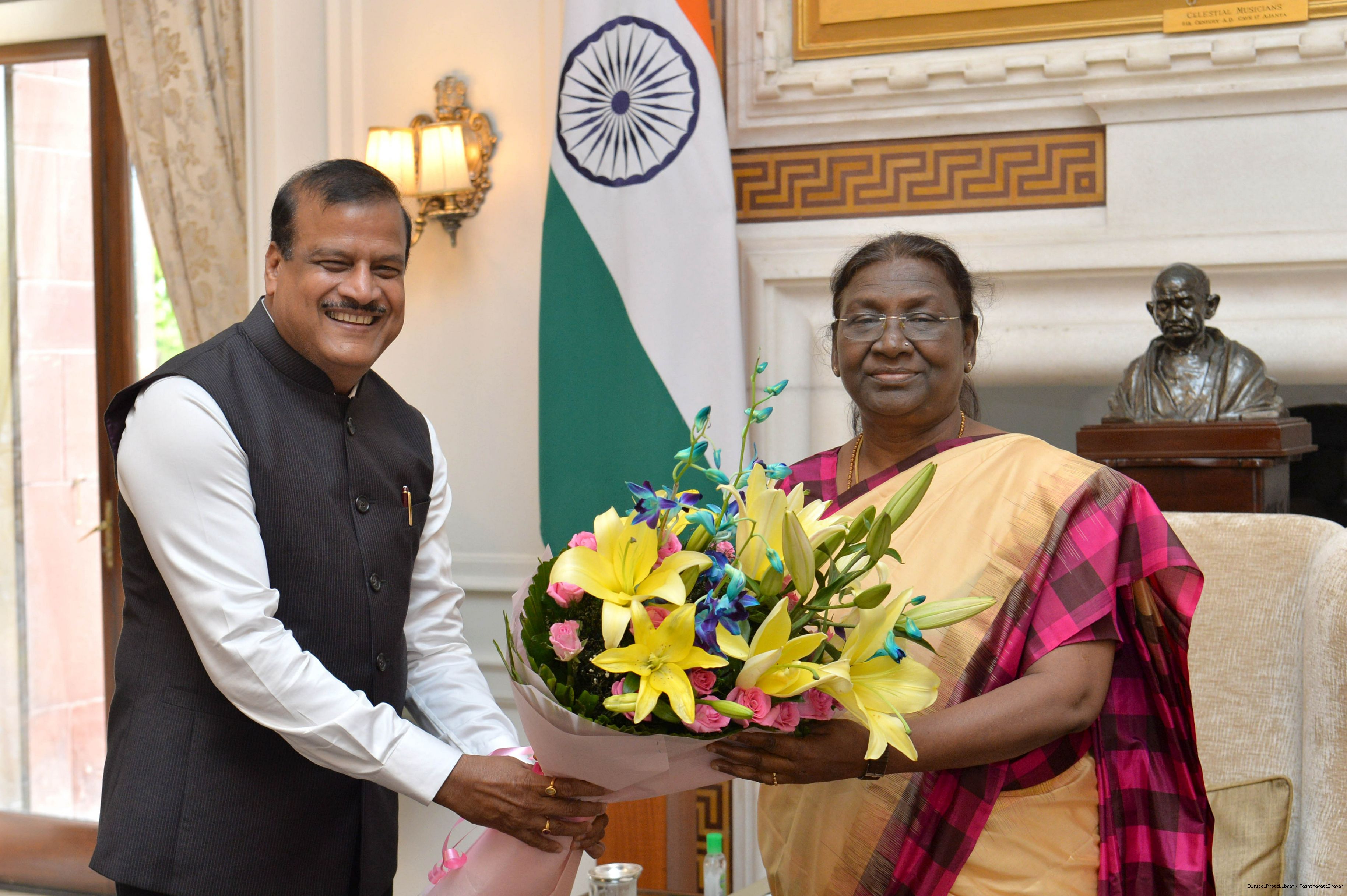Shri Sudarshan Bhagat, MP(LS) meeting with the President of India, Smt. Droupadi Murmu, at Rashtrapati Bhavan on Aug 10, 2022.