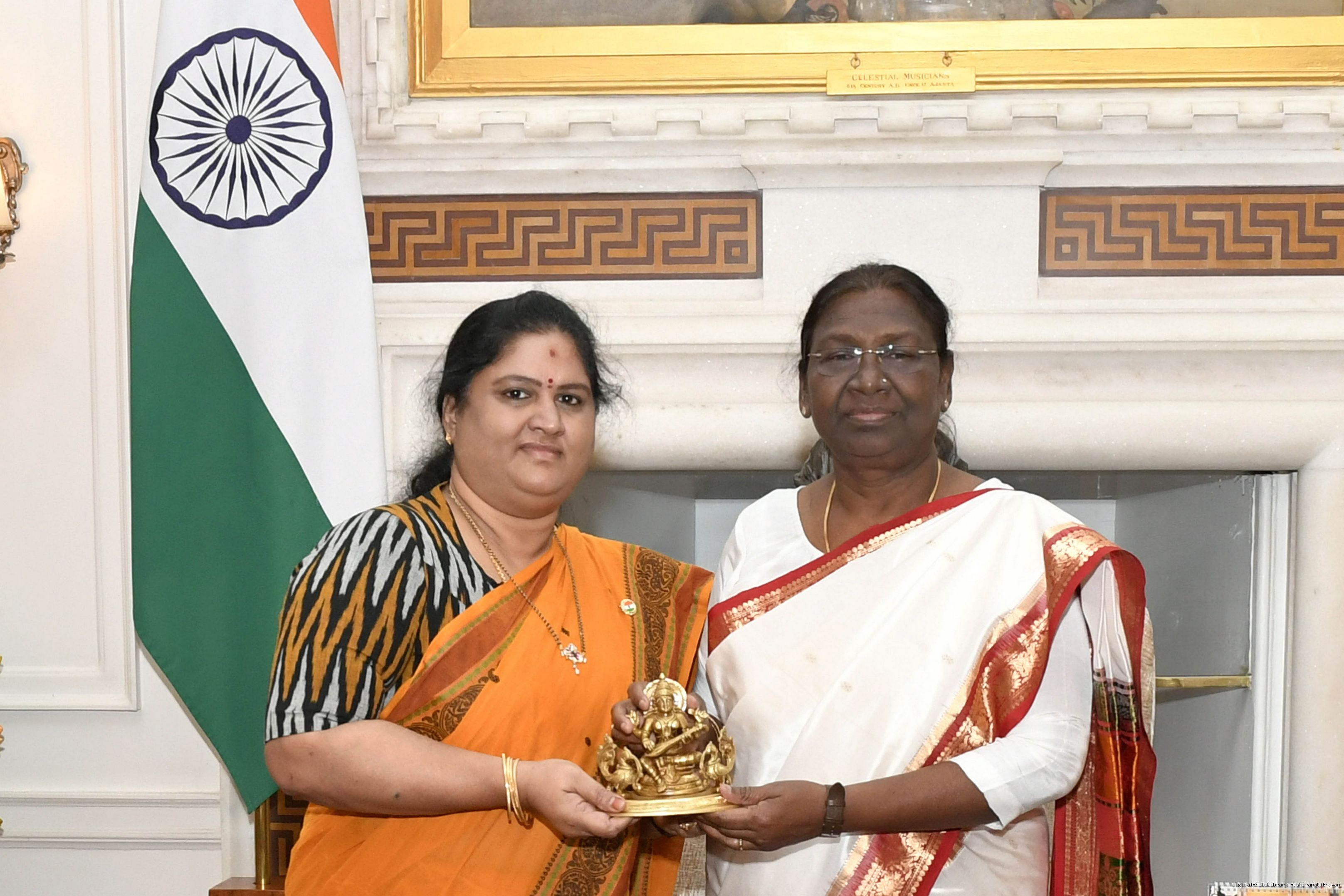 Smt. Geetha Kothapalli, ex. MP(LS) along with others meeting with the President of India, Smt. Droupadi Murmu, at Rashtrapati Bhavan on Aug 03, 2022.