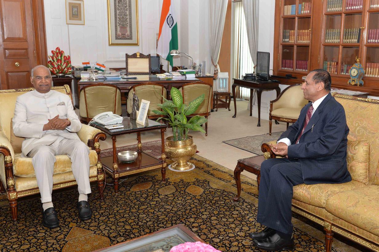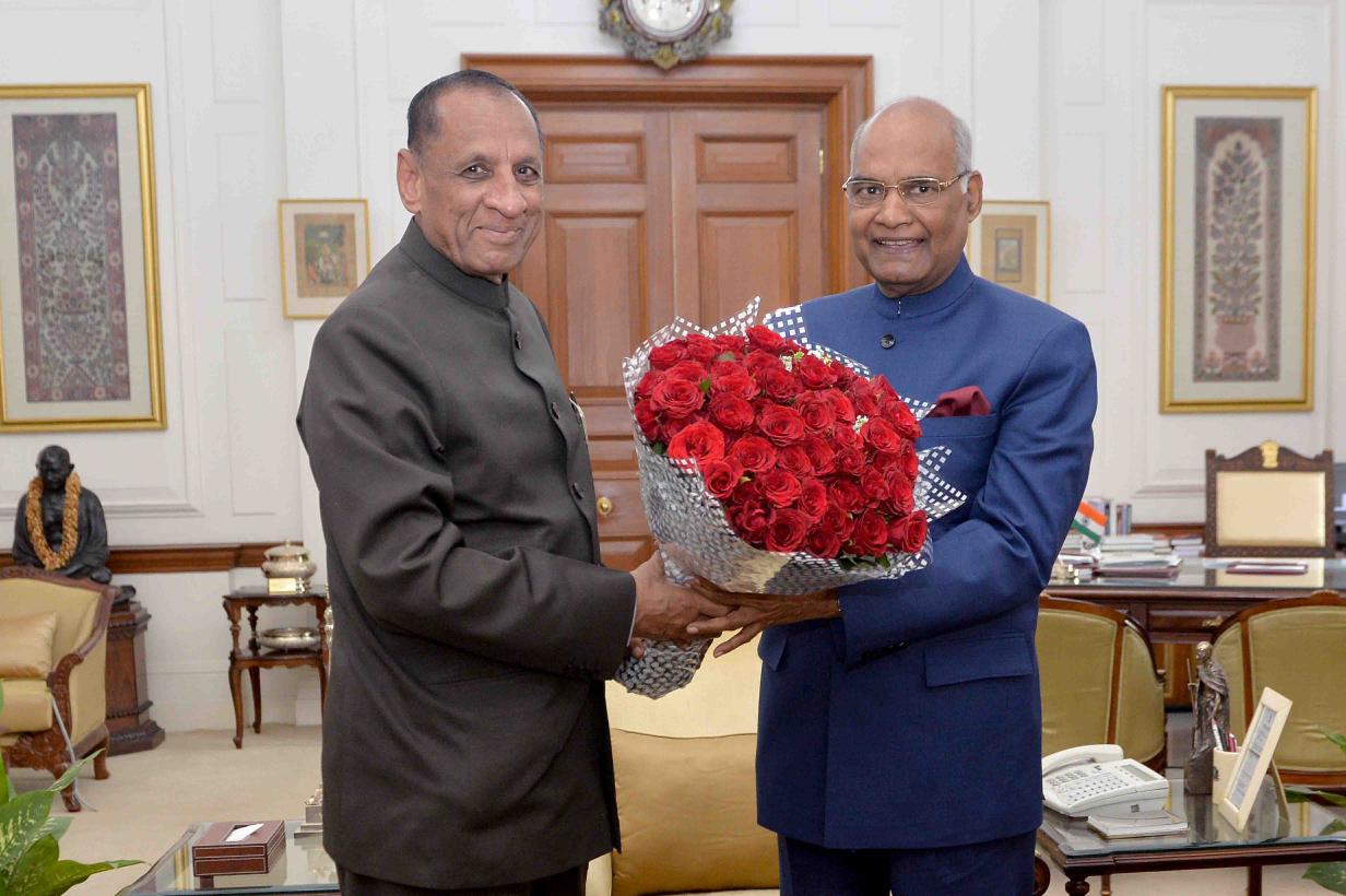 The Governor of Telangana, Shri E.S.L. Narasimhan meeting with the President of India, Shri Ram Nath Kovind, at Rashtrapati Bhavan on August 20, 2019.