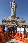 The President of India, Shri Ram Nath Kovind paying floral tributes at the statue of Lord Buddha, at Hussain Sagar Lake, in Hyderabad on December 20, 2017.
