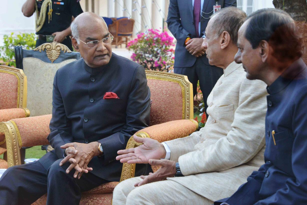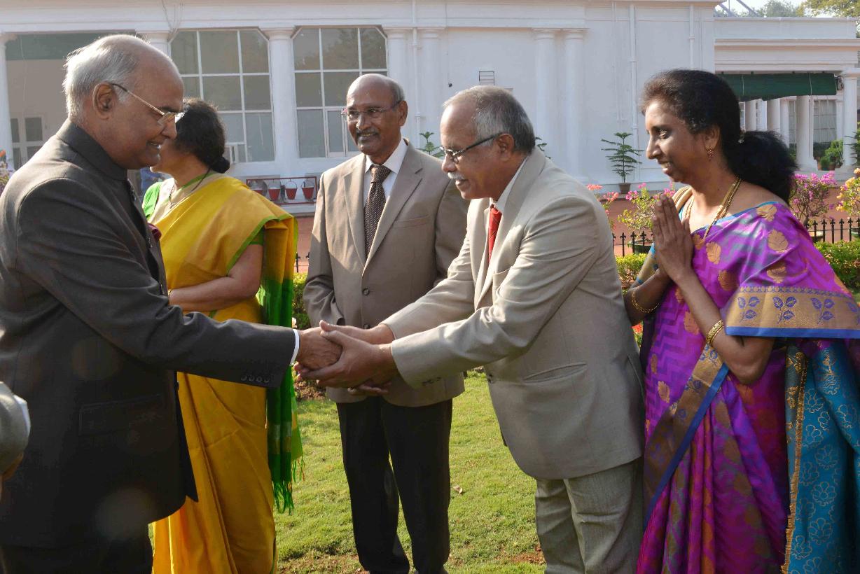 The President of India, Shri Ram Nath Kovind with the Chief Justice & Judges of High Court of Andhra Pradesh & Telangana, at Nilayam, Bolaram, in Secunderabad on December 25, 2017.