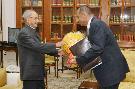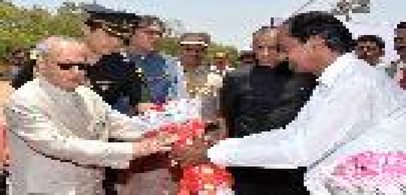 The President of India, Shri Ram Nath Kovind being received by the Governor of Andhra Pradesh and Telangana, Shri E.S.L. Narasimhan and the Chief Minister of Telangana, Shri K. Chandrasekhar Rao, on his arrival, at Begumpet Airport, in Hyderabad on December 19, 2017.