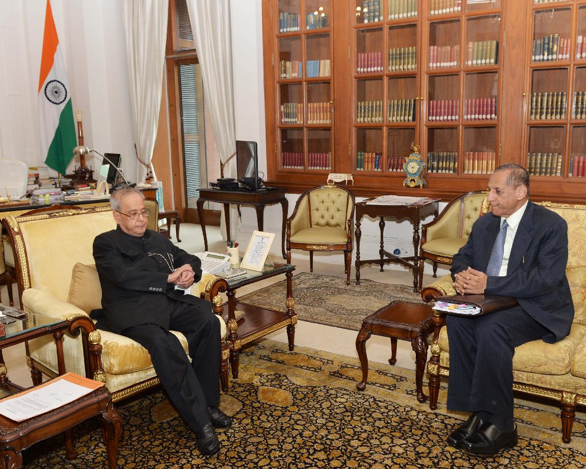 The Governor of Andhra Pradesh & Telangana, Shri E.S.L. Narasimhan calling on the President of India, Shri Pranab Mukherjee, at Rashtrapati Bhavan, in New Delhi on October 05, 2015.
