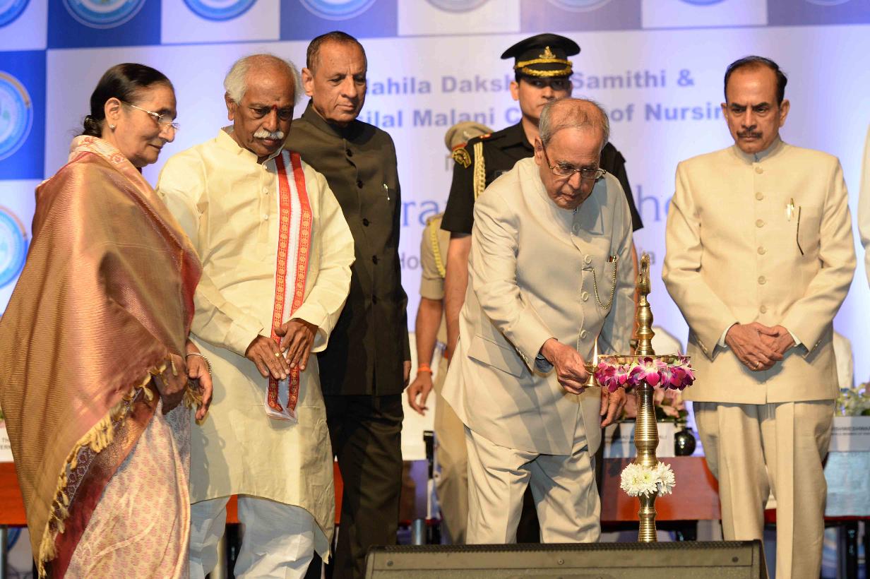 The President of India, Shri Pranab Mukherje inaugurating the Mahila Dakshata Samiti and Bansilal Malani College of Nursing, at Chanda Nagar, in Hyderabad, Telangana on December 24, 2016.
