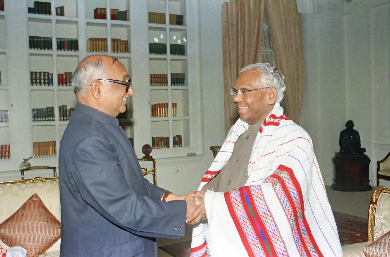 The President of India, Shri K R Narayanan meeting with the Governor of Mizoram, Shri A Padmanabhan at Rashtrapati Bhavan in New Delhi on Nov 11, 1998