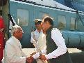 The President of India, Shri K R Narayanan being welcomed by the Governor Rajasthan, Shri Anshuman Singh and the Chief Minister of Rajasthan, Shri Ashok Gehlot at Village Hamirpura Dist Alwar in Rajasthan on March 28, 2000