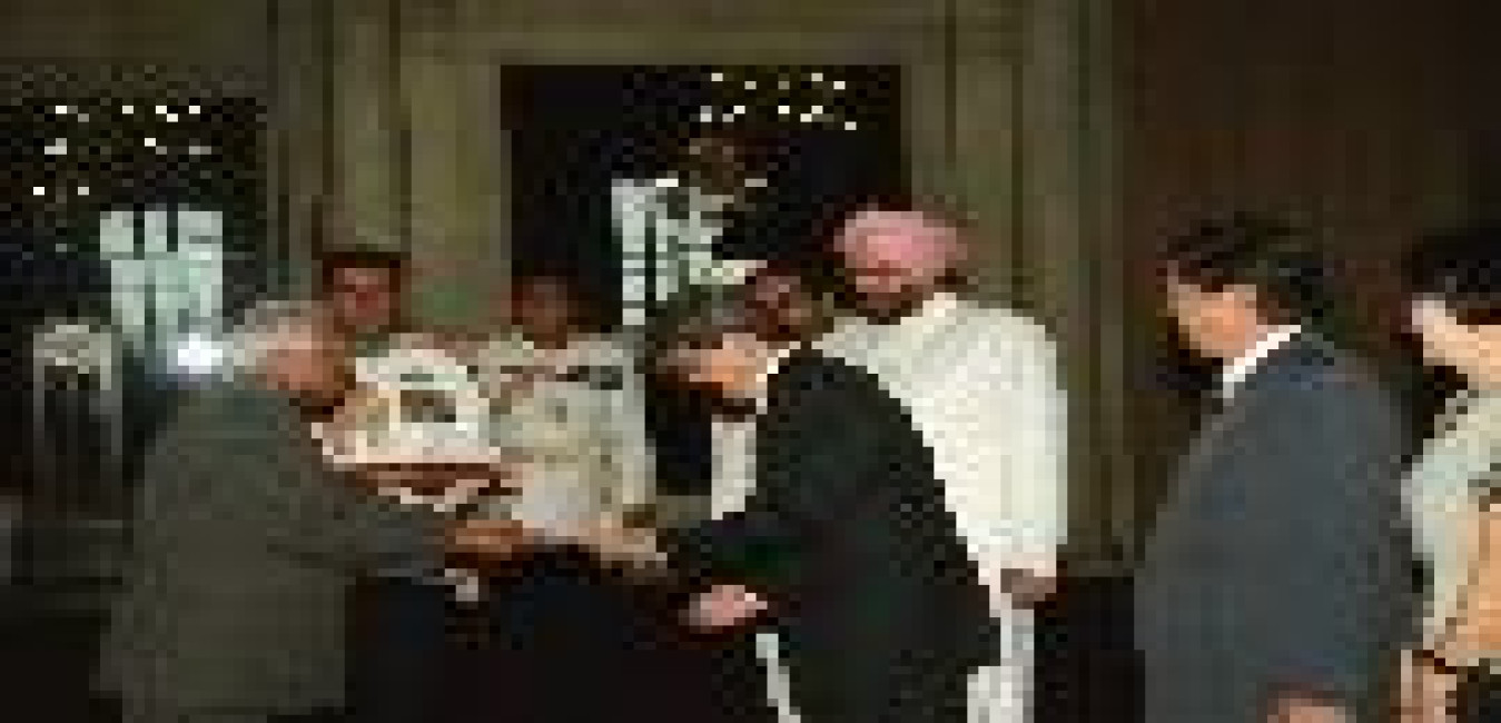 The Ambassador-Designate of the Kyrghyz Republic, HE Mr Baktynek Dj Beshimov presenting his credentials to the President of India, Shri K R Narayanan at the Ashok Hall of Rashtrapati Bhavan in New Delhi on May 15, 2000