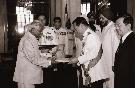 The Ambassador-Designate of the Kingdom of Thailand to India, HE Mr Bandhit Sotipalalit presenting his credentials to the President of India, Shri K R Narayanan at the Ashok Hall of Rashtrapati Bhavan in New Delhi on April 30, 2001