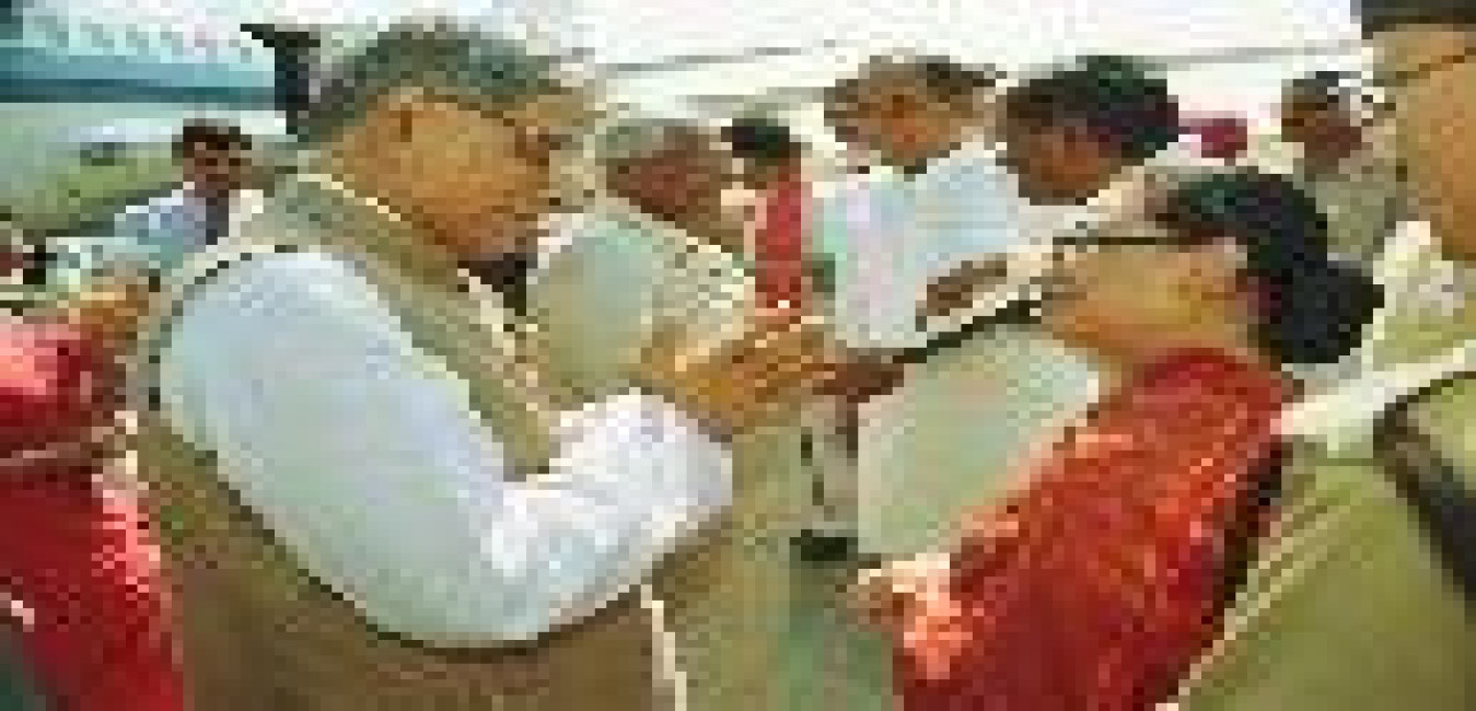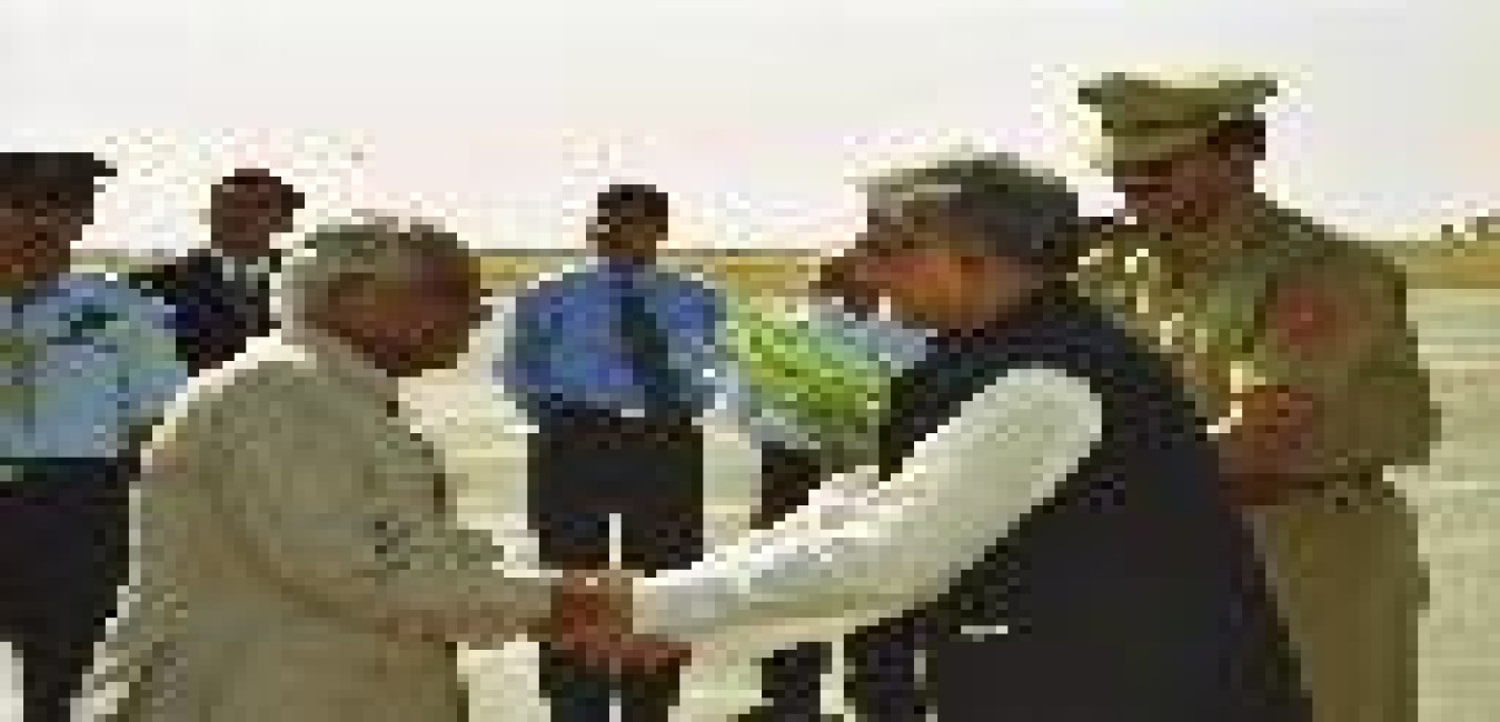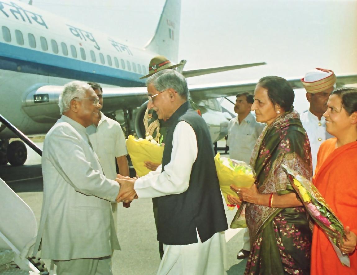 The President of India, Shri K R Narayanan being welcomed by the Governor of Madhya Pradesh, Dr Bhai Mahavir and the Chief Minister of Madhya Pradesh, Shri Digvijay Singh at Khajuraho Airport in Madhya Pradesh on March 06, 1999