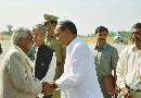 The President of India, Shri K R Narayanan being welcomed by the Governor of Madhya Pradesh, Shri Bhai Mahavir and Chief Minister of Madhya Pradesh, Shri Dijvijay Singh at Ujjain Airport in Madhya Pradesh on Nov 06, 2000