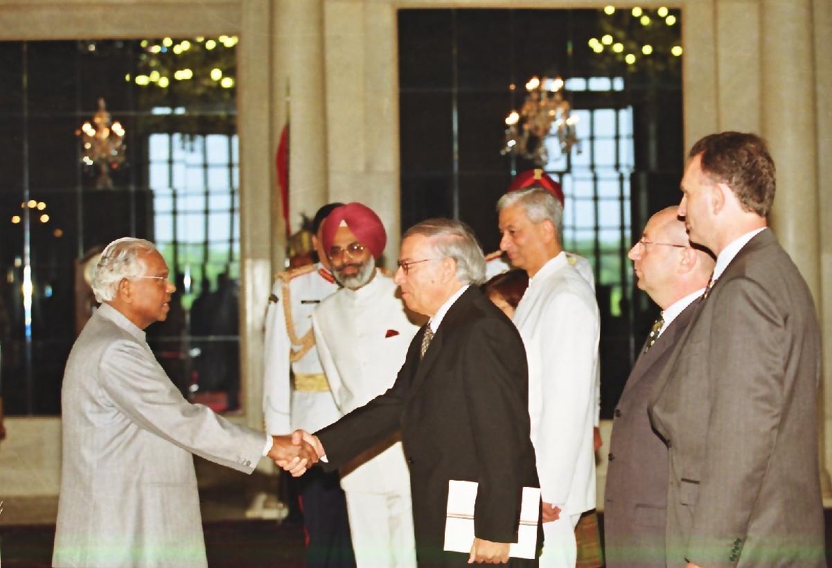 The Ambassador-Designate of the Israel to India, HE Mr David Aphek presenting his credentials to the President of India, Shri K R Narayanan at the Ashok Hall of Rashtrapati Bhavan in New Delhi on Sep 19, 2000