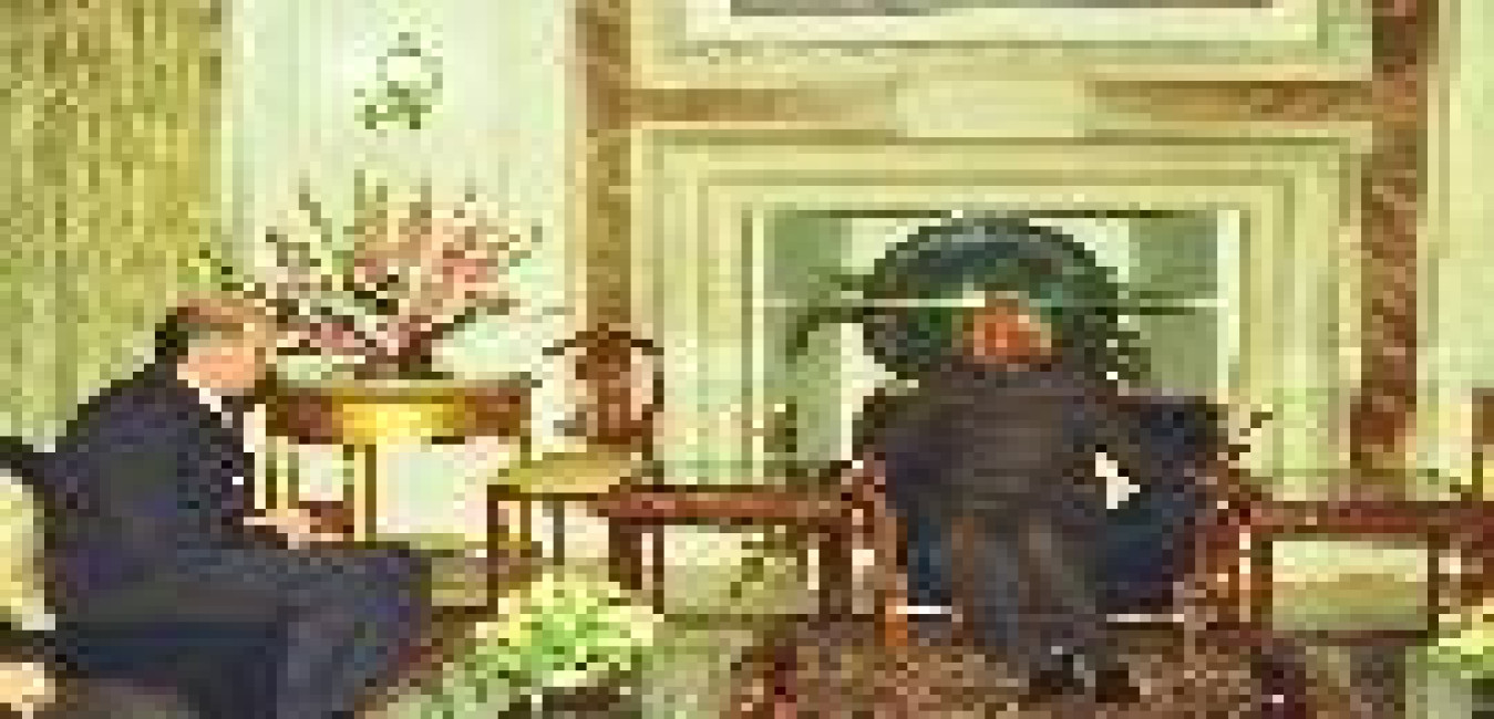 The Minister of Foreign Affairs of the Hellenic Republic, HE Mr George A Papandreou calling on the President of India, Shri K R Narayanan at the Morning Room of Rashtrapati Bhavan in New Delhi on Dec 21, 2000