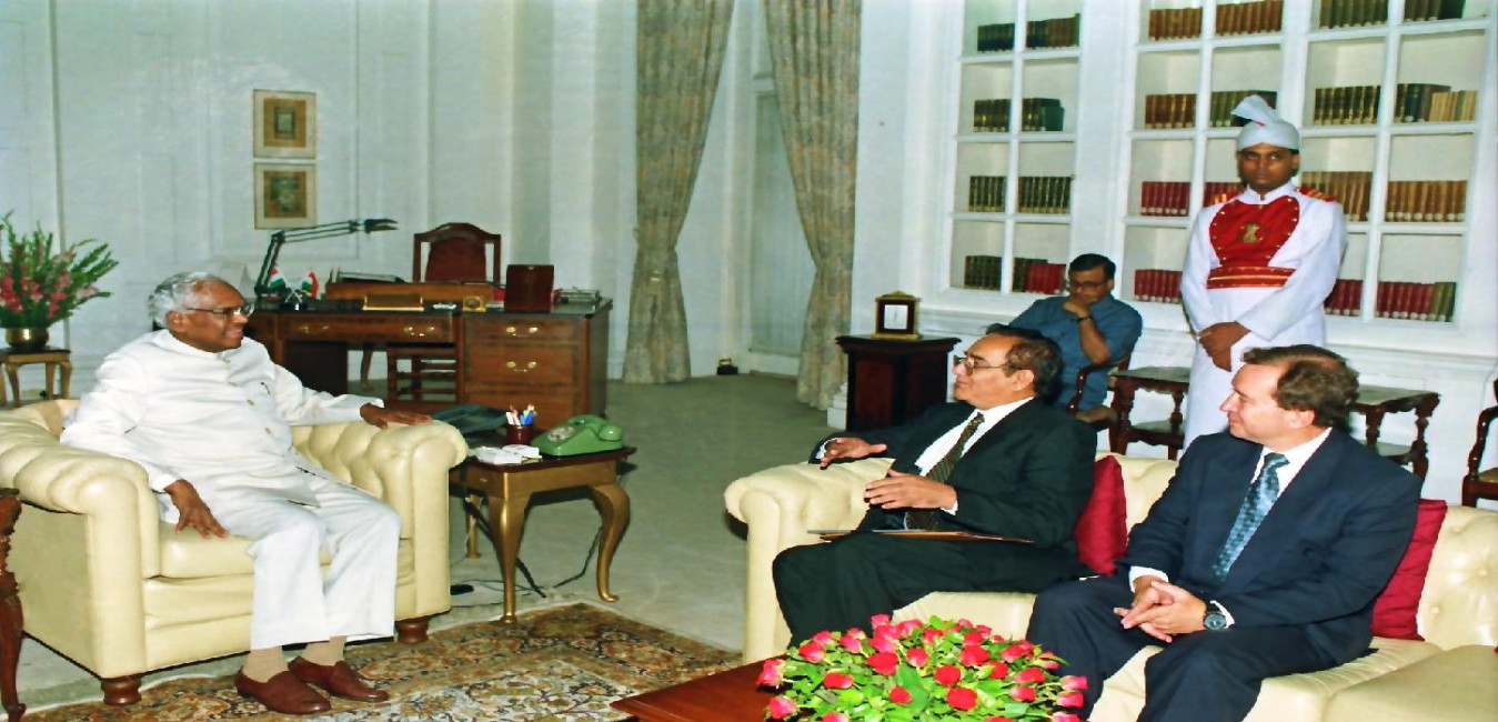 The President of India, Shri K R Narayanan meeting with the Chief Justice of South Africa, HE Mr Justice Ismail Mahomed at Rashtrapati Bhavan in New Delhi on Aug 04, 1997
