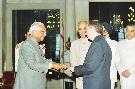 The Ambassador-Designate of Lebanon, HE Dr Jean G Danial presenting his credentials to the President of India, Shri K R Narayanan at the Ashok Hall of Rashtrapati Bhavan in New Delhi on Sep 23, 1999