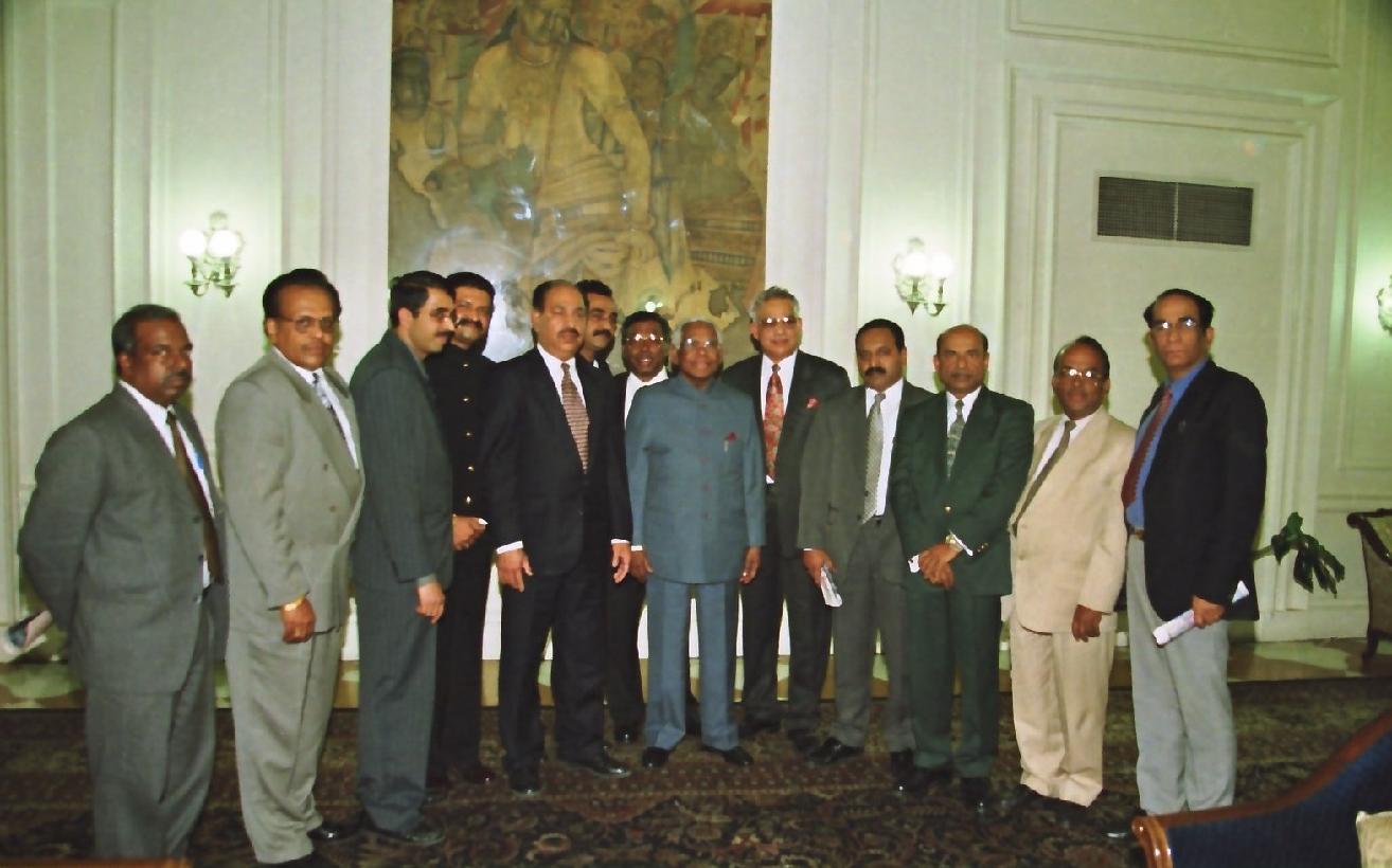 The Office Bearers of the Federation of Kerala Associations in North America INC Shri Kalathil Pappachan calling on the President of India, Shri K R Narayanan at the Morning Room of Rashtrapati Bhavan in New Delhi on Feb 14, 2000