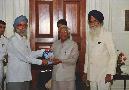 The President of India, Shri K R Narayanan receiving a copy of the Book "Mangal Kalash" from Shri Kuldeep Singh at the Morning Room of Rashtrapati Bhavan on Sep 21, 1999