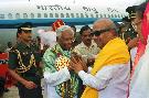The President of India, Shri K R Narayanan being welcomed by the Governor of Tamil Nadu, Justice M Fathima Beevi and the Chief Minister of Tamil Nadu, Shri M Karunanidhi at Chennai Airport in Tamil Nadu on Sep 20, 1997
