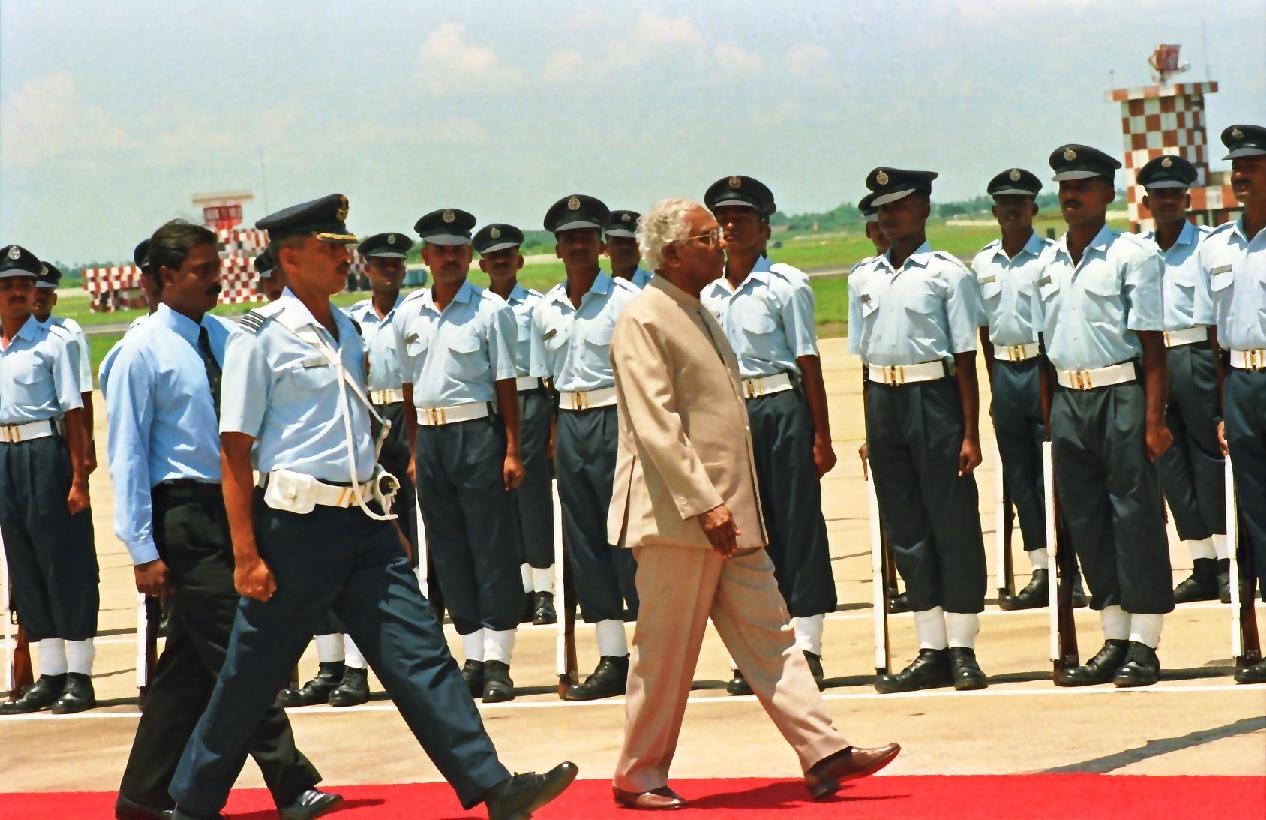 The President of India, Shri K R Narayanan being seen off by the Governor of Tamil Nadu, Justice M Fathima Beevi and the Chief Minister of Tamil Nadu, Shri M Karunanidhi at Chennai Airport in Tamil Nadu on Sep 21, 1997