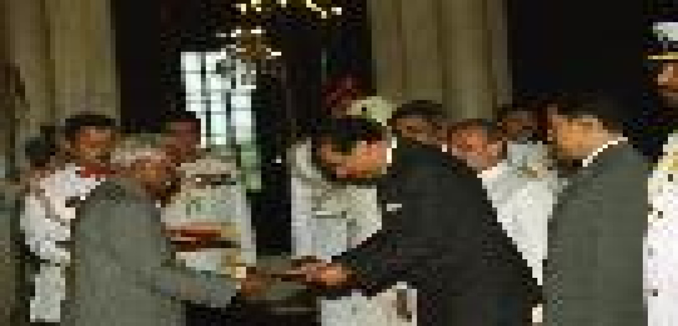 The Commissioner-Designate of the Democratic Socialist Republic of Sri Lanka to India, HE Mr Mangala Moonesinghe presenting his credentials to the President of India, Shri K R Narayanan at the Ashok Hall of Rashtrapati Bhavan in New Delhi on July 11, 2002