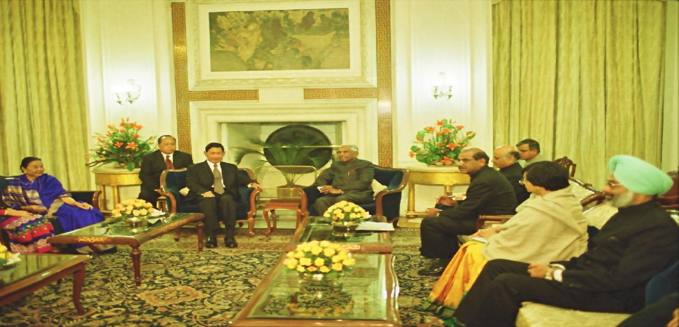 The Vice Chairman of the State Peace and Development Council of Myanmar, HE General Maung Aye and Daw Mya Mya San calling on the President of India, Shri K R Narayanan at the Morning Room of Rashtrapati Bhavan in New Delhi on Nov 17, 2000
