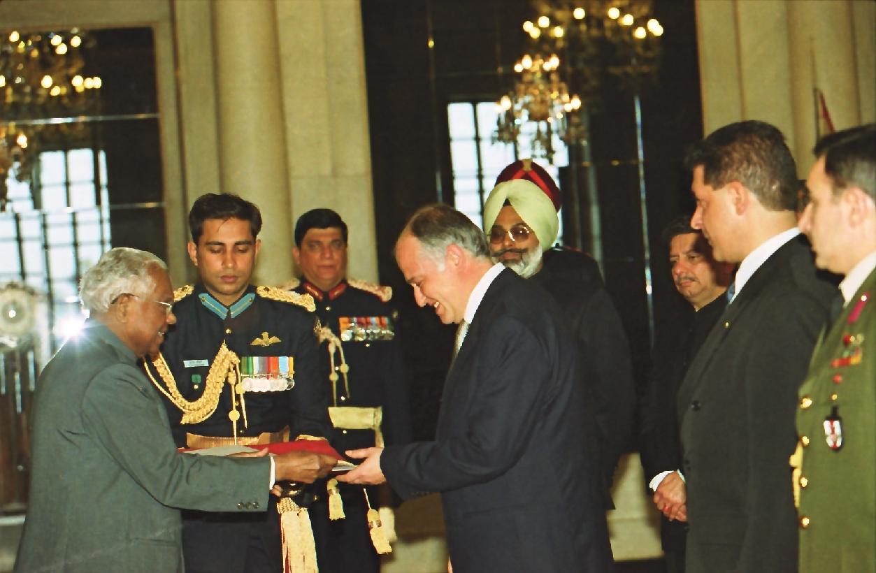 The Ambassador-Designate of the Republic of Turkey to India, His Excellency Mr Mehmet Hasan Gogus presenting his credentials to the President of India, Shri K R Narayanan at the Ashok Hall of Rashtrapati Bhavan in New Delhi on Jan 21, 2002