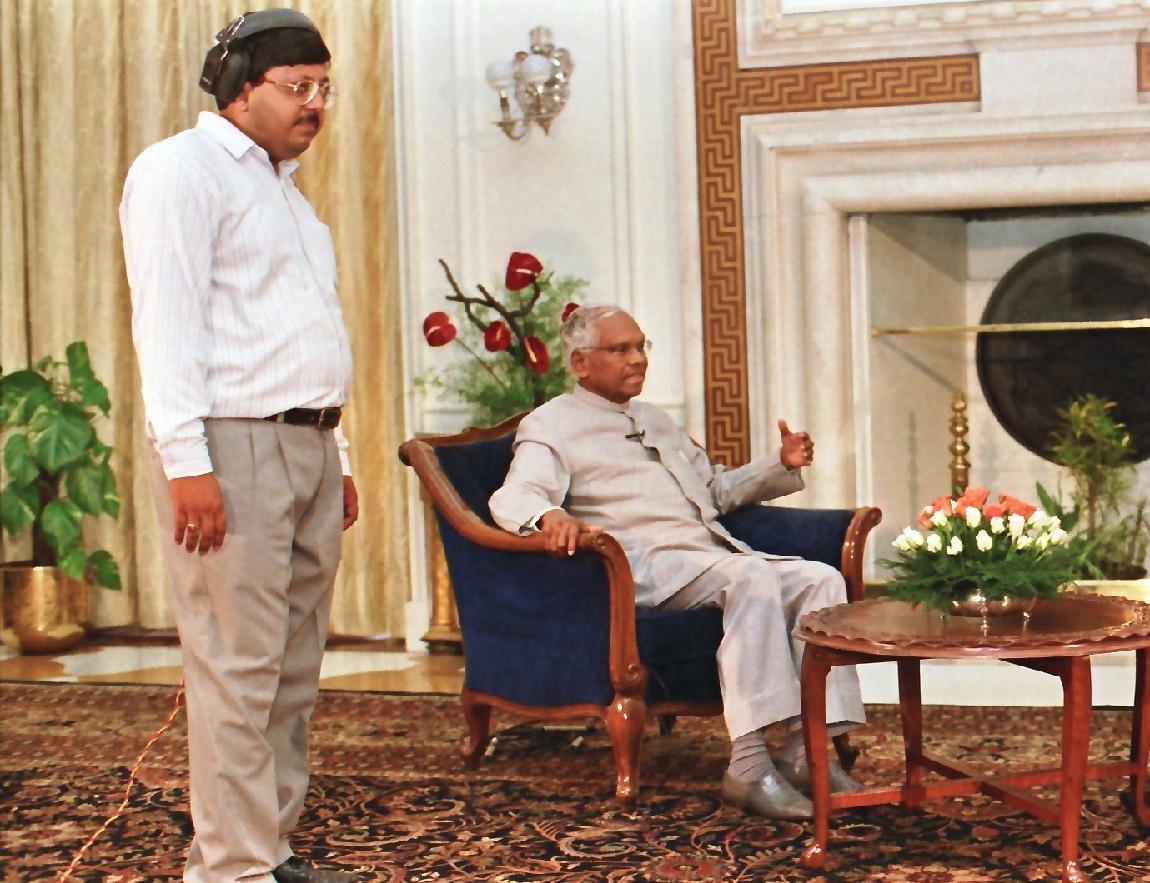 The President of India, Shri K R Narayanan being interviewed by Shri N Ram at the Rashtrapati Bhavan in New Delhi on Aug 05, 1998
