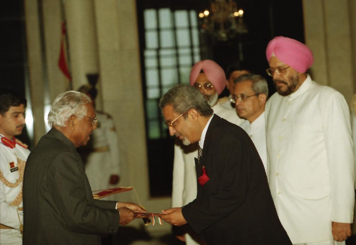The Non-Resident Ambassador-Designate of the Republic of Djibouti to India, HE Mr Rachand Farah presenting his credentials to the President of India, Shri K R Narayanan at the Ashok Hall of Rashtrapati Bhavan in New Delhi on June 06, 2001