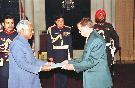 The High Commissioner-Designate of Mauritius to India, HE Mr Rohit Narainsing Guttee presenting his credentials to the President of India, Shri K R Narayanan at the Ashok Hall of at Rashtrapati Bhavan in New Delhi on Dec 22, 1998