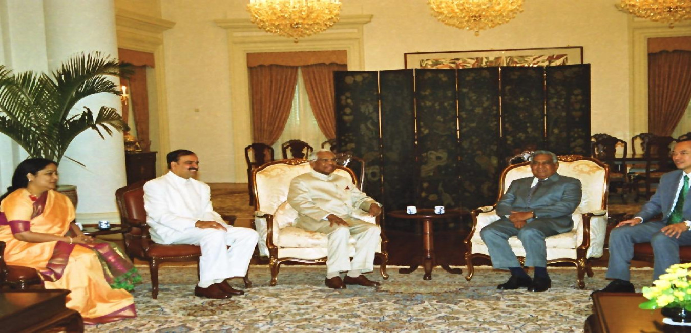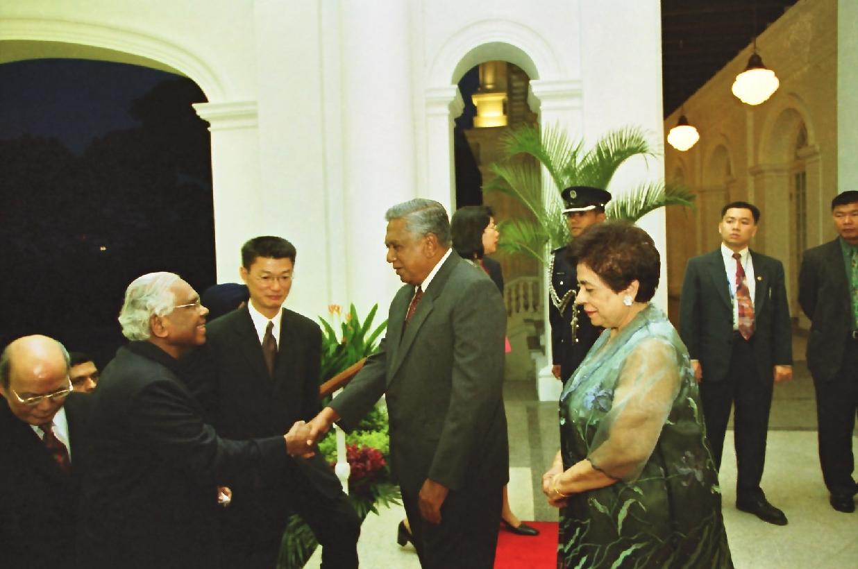 The President of India, Shri K R Narayanan meeting with the President of Singapore, HE Mr S R Nathan in Singapore on Nov 10, 2000