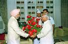 The President of India, Shri K R Narayanan meeting with the Governor of Kerala, Shri Justice S S Kang at Rashtrapati Bhavan in New Delhi on Aug 04, 1997