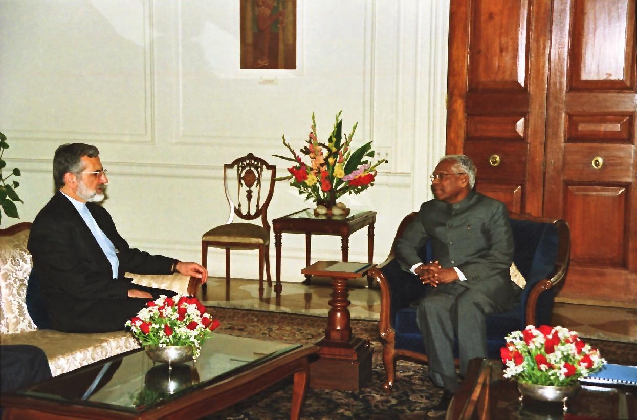 The Foreign Minister of the Islamic Republic of Iran, HE Dr Seyed Kamal Kharrazi calling on the President of India, Shri K R Narayanan at the Morning Room of Rashtrapati Bhavan in New Delhi on Feb 24, 1999