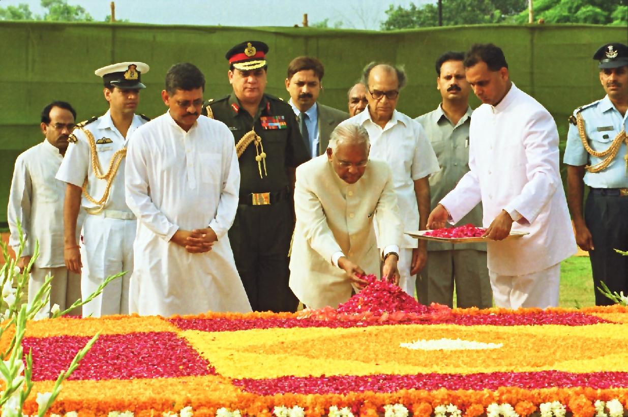 The President of India, Shri K R Narayanan paying floral tributes to the Former President of India, Late Dr Shanker Dayal Sharma on his Birth Anniversary at Karma Bhoomi in New Delhi on August 19, 2000