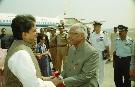 The President of India, Shri K R Narayanan being welcomed by the Chief Minister of Maharashtra, Shri Vilasrao Deshmukh Mumbai Airport in Maharashtra on Feb 16, 2001