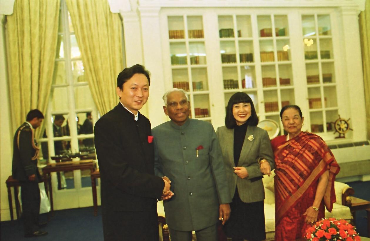 The President of the Democratic Party of Japan and Leader of the opposition, His Excellency Mr Yukio Hotoyama and his wife Mrs Hotoyama calling on the President of India, Shri K R Narayanan at Rashtrapati Bhavan in New Delhi on Jan 11, 2002