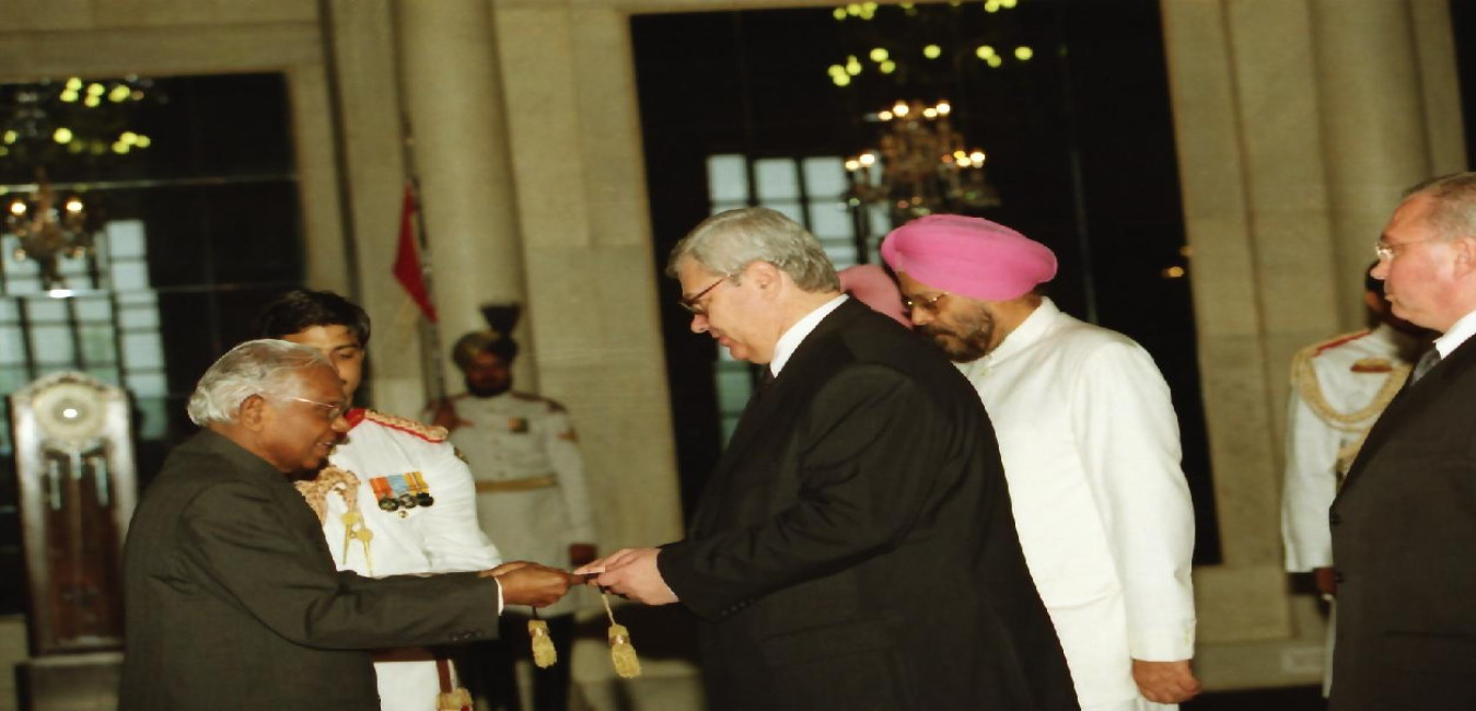 The President of India, Shri K R Narayanan pinning the Rank on LDR Chauhan ADC at Rashtrapati Bhavan in New Delhi on June 15, 2001