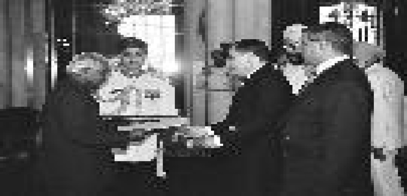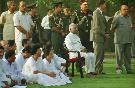 The President of India, Shri K R Narayanan posing for a Group Photograph with the ASC Centre Brass Band at the Ashok Hall of Rashtrapati Bhavan in New Delhi on June 25, 2001