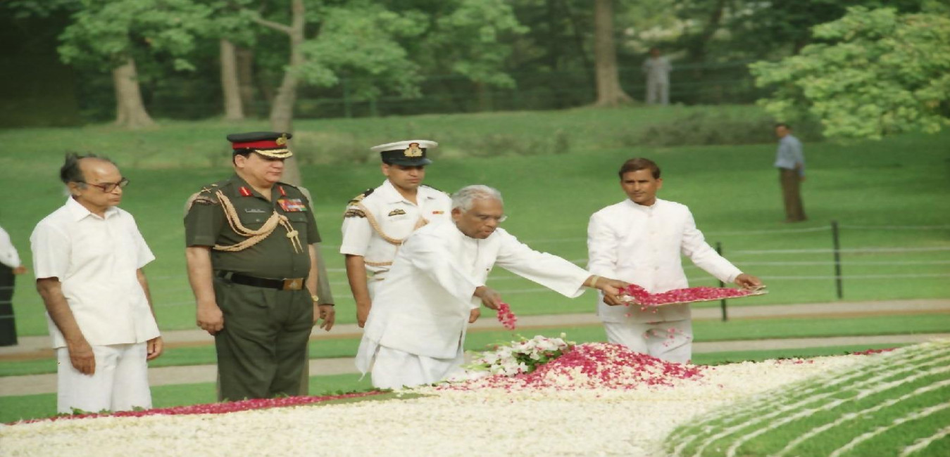 The President of India, Shri K R Narayanan paying homage at the Samadhi of the Former Prime Minister of India, Late Shri Pandit Jawaharalal Nehru on the occasion of the Death Anniversary at Shanti Van in New Delhi on May 27, 2000