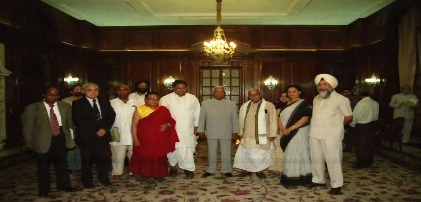 The President of India, Shri K R Narayanan receiving the Special Report on Bihar Land Reforms from the Chairman and Members of the National Commission for Scheduled Castes and Scheduled Tribes at the Committee Room of Rashtrapati Bhavan in New Delhi on April 26, 2000