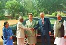 The President of India, Shri K R Narayanan at the Ceremonial Reception of President of the Republic of Uzbekistan, HE Mr Islam Abduganievich Karimov and his wife Tatyana Karimova at the Forecourt of Rashtrapati Bhavan in New Delhi on May 02, 2000