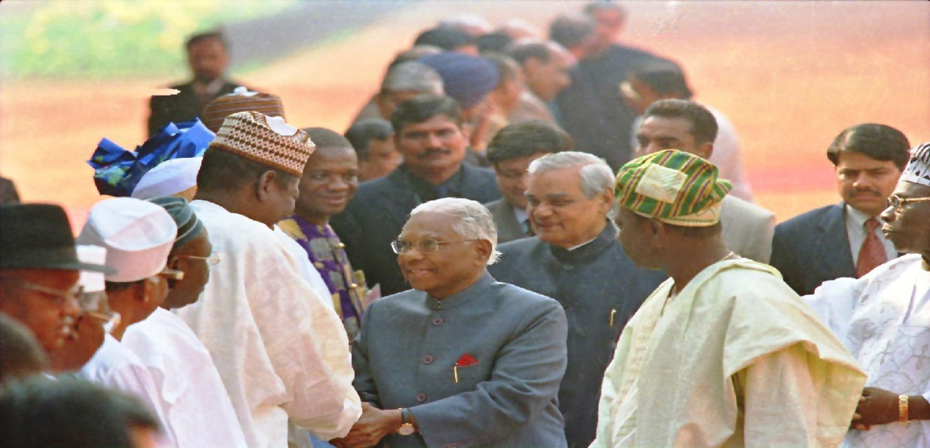 The President of India, Shri K R Narayanan at the Banquet Hosted in Honour of the Distinguished Guest of the President of the Federal Republic of Nigeria, HE Mr Olusengun Obasanjo at the Banquet Hall of Rashtrapati Bhavan in New Delhi on Jan 25, 2000