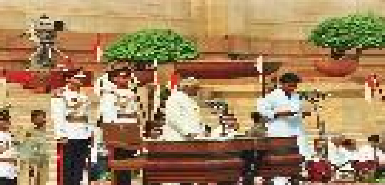 The President of India, Shri K R Narayanan addressing to the both the Houses of Parliament in the Central Hall of Parliament House in New Delhi on Oct 25, 1999