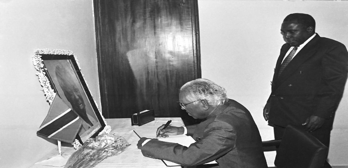 The President of India, Shri K R Narayanan during visit to Tanzania High Commission Embassy and also signing on the Condolence Book at EP 15C, Chanakyapuri, Chandragupta Marg, Malcha in New Delhi on Oct 15, 1999
