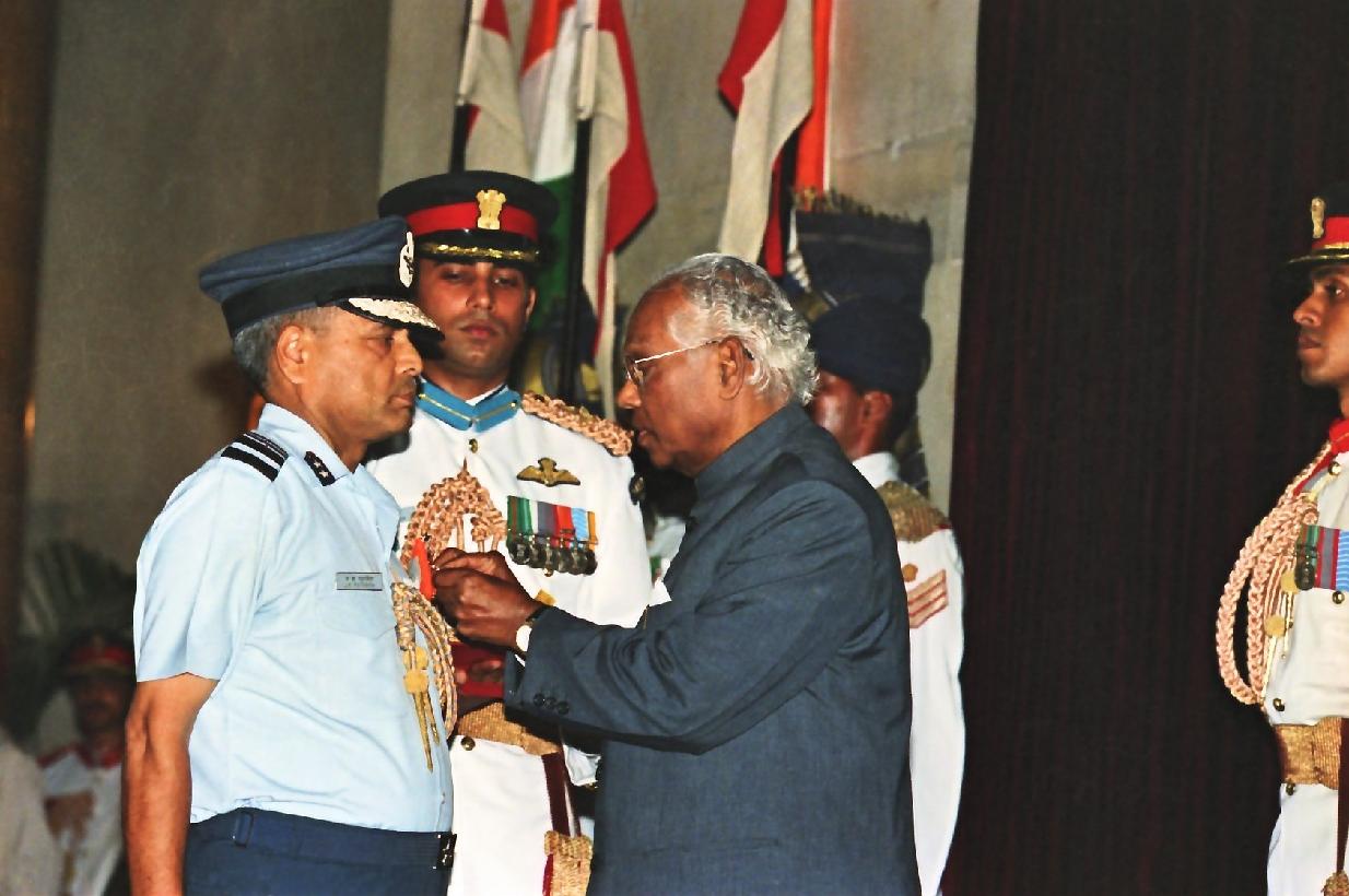 The President of India, Shri K R Narayanan during the Defence Investiture-I at the Darbar Hall of Rashtrapati Bhavan in New Delhi on Oct 20, 1999