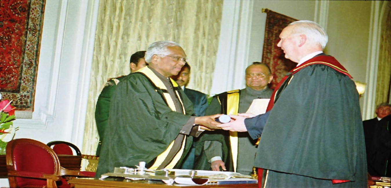 The President of India, Shri K R Narayanan accepting the Honorary Fellowship of the Royal College of Physicians and Surgeons of Glasgow at the Yellow Drawing Room of Rashtrapati Bhavan in New Delhi on Feb 18, 2002