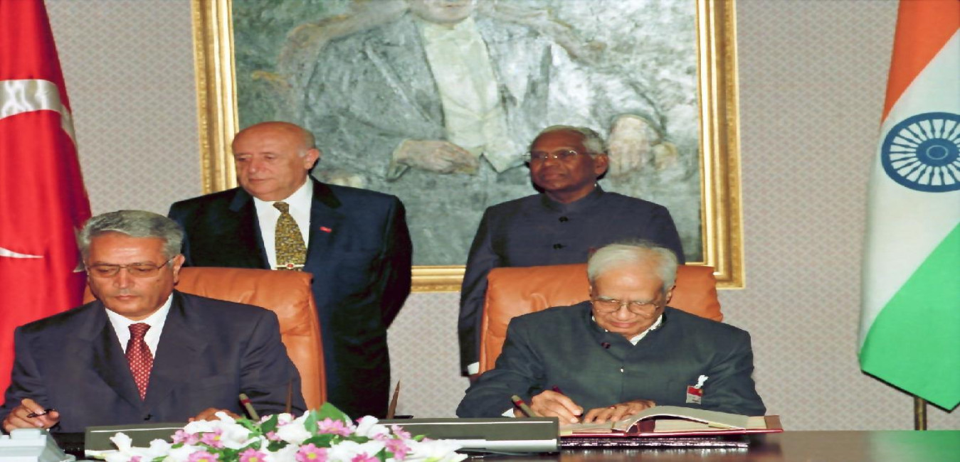 The President of India, Shri K R Narayanan signing of Agreements at Ankara in Turkey on Sep 17, 1998
