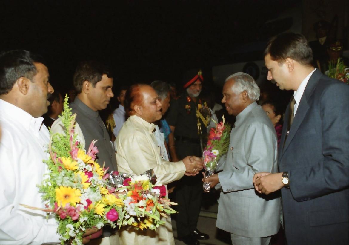 The President of India, Shri K R Narayanan being welcomed by the Governor of Maharashtra, Shri P C Alexander and Chief Minister of Maharashtra, Shri Vilasrao Deshmukh at Nagpur Airport in Maharashtra on Dec 18, 2001