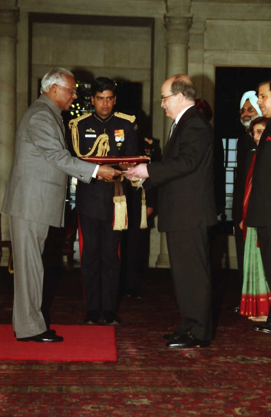 The Ambassador-Designate of Republic of Finland to India, HE Mr Glen Lindholm presenting his credentials to the President of India, Shri K R Narayanan at the Ashok Hall of Rashtrapati Bhavan in New Delhi on Dec 11, 2001